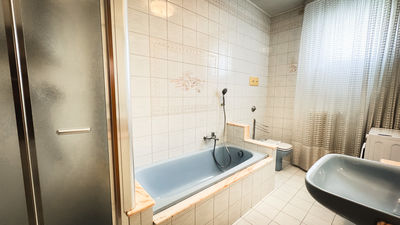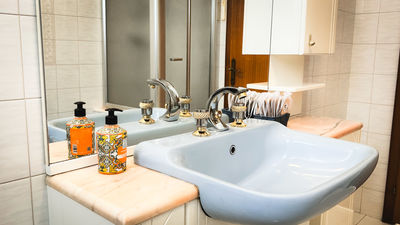 A bathroom with bathtub/shower, bidet and toilet, a washing machine at your disposal, courtesy set for intimate hygiene, to give you the right welcome.