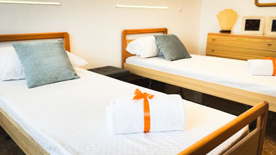 There are two double bedrooms with linen and towels, a third bedroom with two single beds.